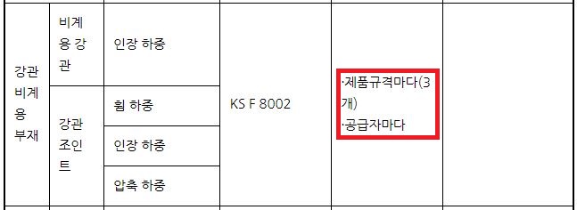 - ex) 비계용 강관 제품규격 : 2m, 3m, 4m, 6m