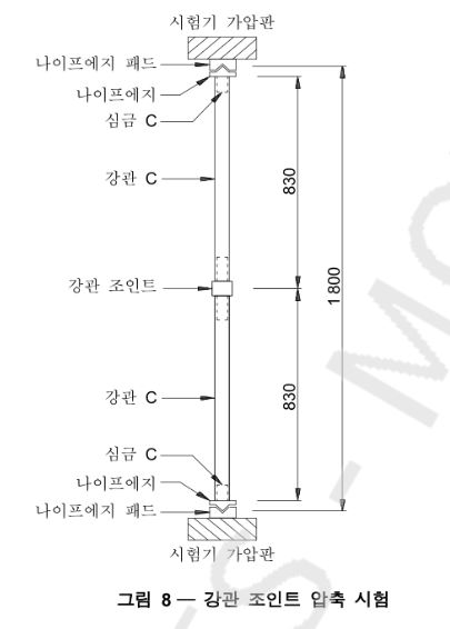 그림 8과 같이 이탈방지 기능이 활성화된 강관 연결부를 Core C, Knife edge 및 Knife Edge Pad, 강관 C를 상하판 중심에 맞춰 정렬한 후 강판과 함께 압착한다. 시험기의 최대 하중 값을 측정합니다.