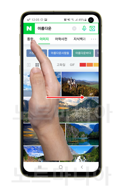 갤럭시 화면을 모션으로 캡쳐하는 두 번째 방법은 모션을 이용해서 화면을 캡쳐하는 방법인데, 그리 어렵지는 않지만 세로 방향으로 화면에 손을 가까이 대고 있다가 오른쪽에서 왼쪽으로 부드럽게 밀면 캡쳐가 위와 같이 완료됩니다. 경우는 오른손으로 촬영을 했기 때문에 왼손으로 오른쪽에서 왼쪽으로 움직이고 있었는데 실제로는 손을 좌우로 흔들어 원하는 손을 사용하면 됩니다. 스크린샷을 찍습니다. 이제 휴대폰을 스마트폰이라고 부르는 것이 똑똑하지 않습니까? ^^; ;하지만 핸드폰으로 모션캡쳐 잘 못하시는 분들도 계실텐데 너무 불안해하지 마시고 손 전체를 가볍게 만져주신 후 살짝 밀어주시면 완성입니다. 속도를 줄이는 것이 가장 중요한(?) 일입니다. .