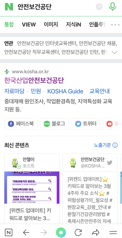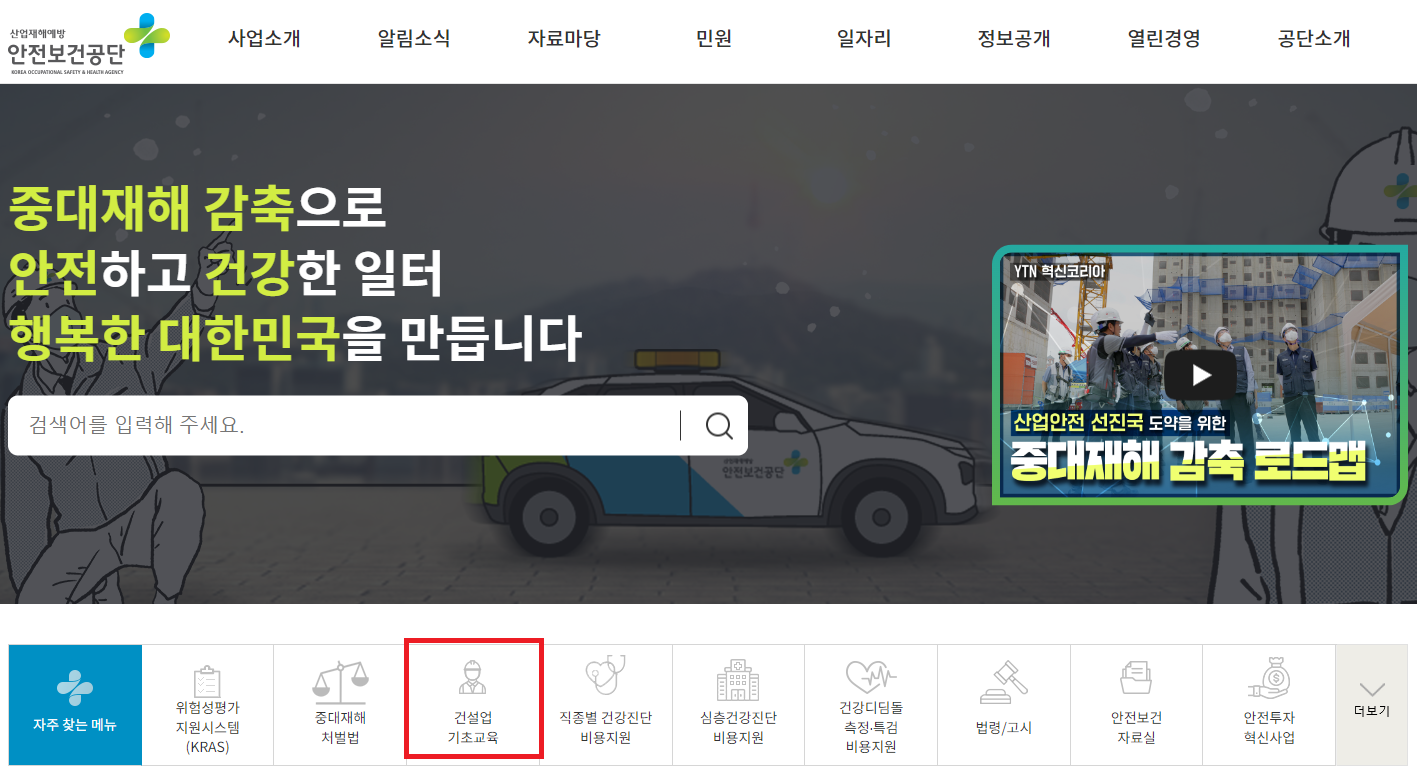 웹창에서 “안전보건공단”을 검색하시면 위와 같이 나옵니다. 그 다음에 이 화면을 아래로 스크롤하면