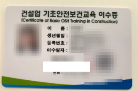 건설현장에서 일할 때 꼭 필요한 건설안전보건기본교육 수료증!