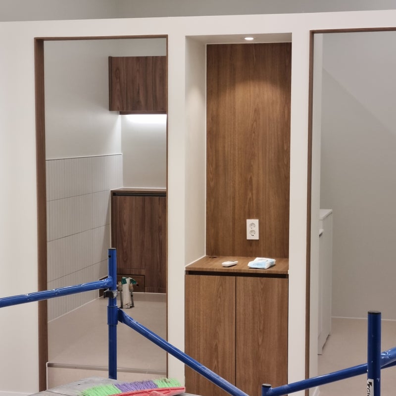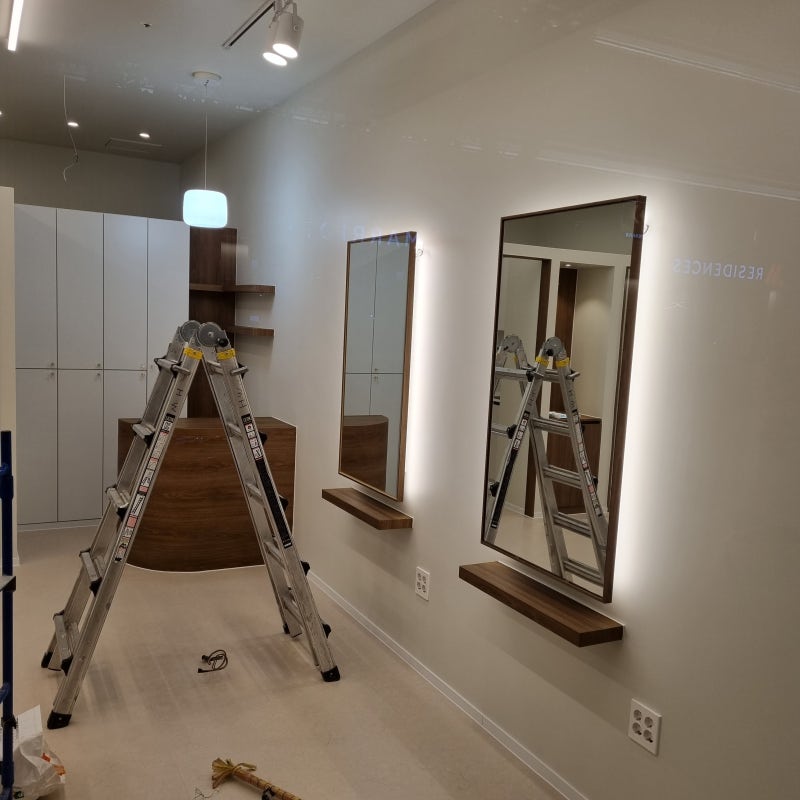 가구류 및 선반장식장은 전문 우드인테리어 시트지 시공으로 깔끔하고 모던한 느낌의 디자인에 맞추었습니다.요즘 유행하는 미용실 인테리어 중 하나가 될 거예요.미용실 인테리어도 잘하는 토미로 미용실 오픈 성지 토미로 오세요~교통 접근