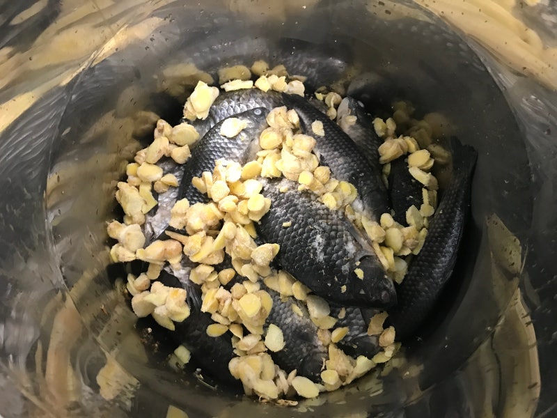 적당량의 물을 부어 밤새 튀겨줍니다.
