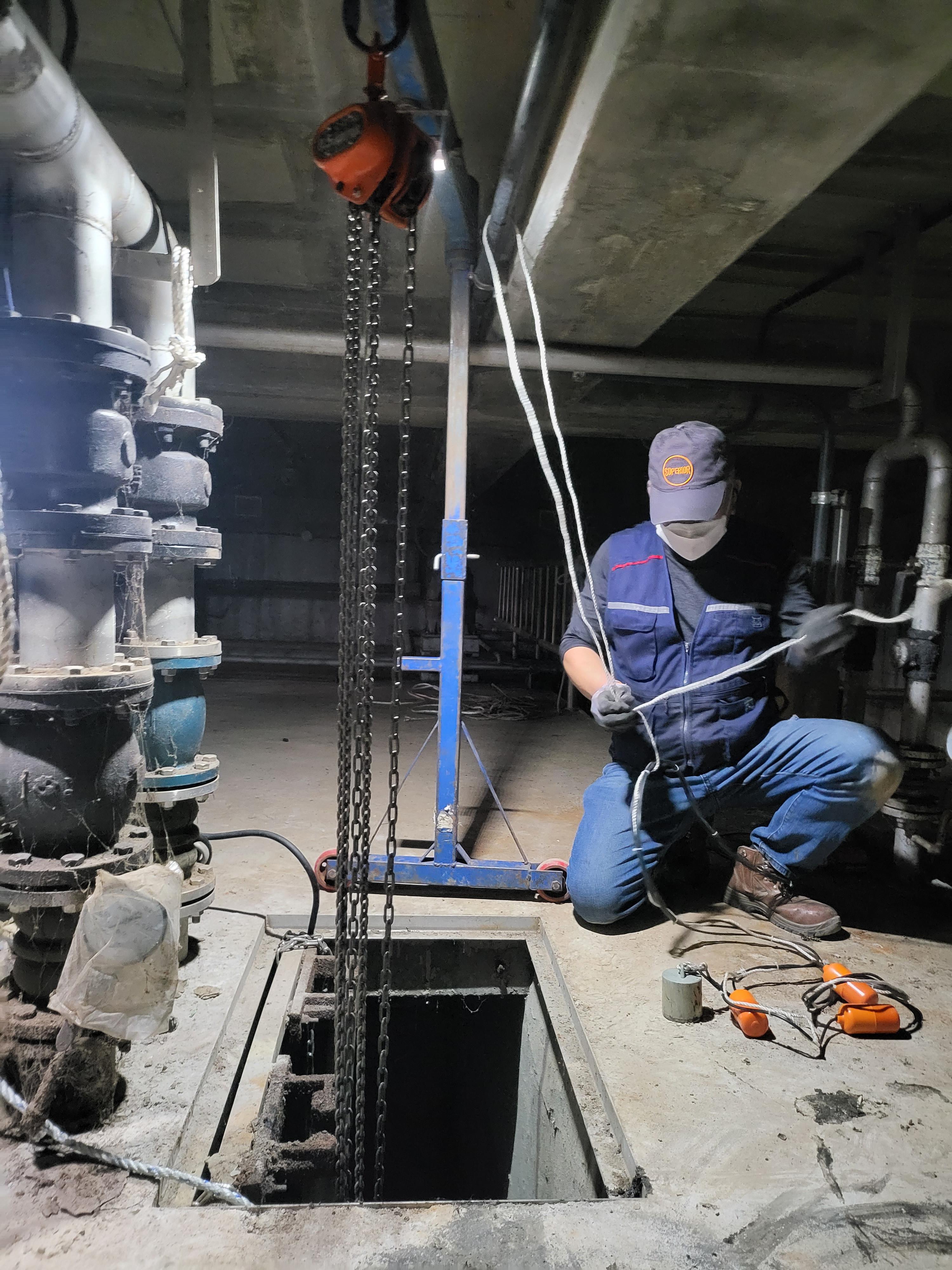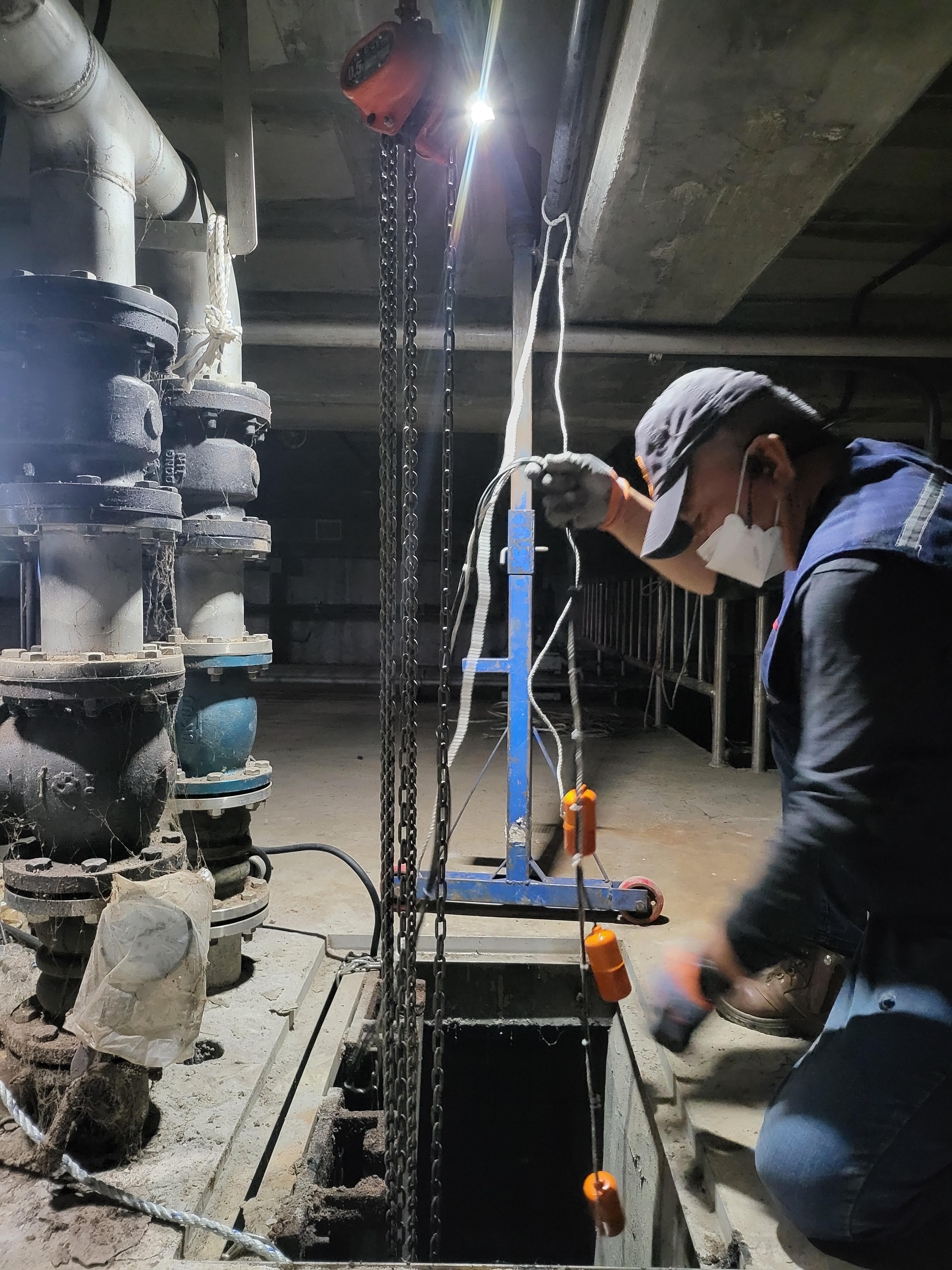 착탈식 배수펌프 교체시 수위센서에 이상이 감지되었습니다.