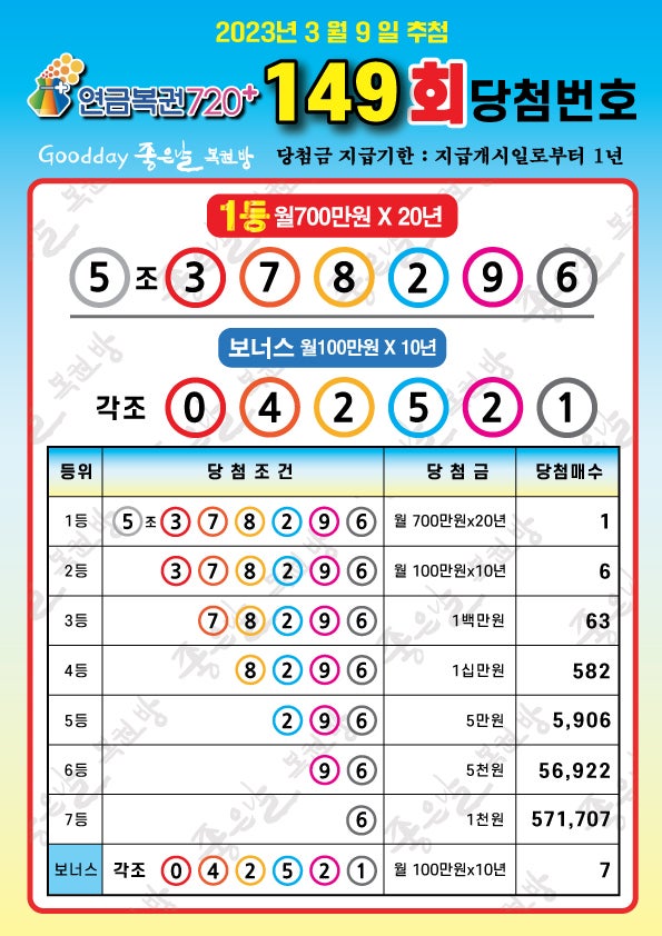 이번주 149회 연금복권 720 1등/보너스당첨번호 1등당첨번호 6부터 시작 설명드리자면 “독특한 경우”.. 개미들.. 오늘도.. ㅜㅜ 그럼 다음주도 화이팅!