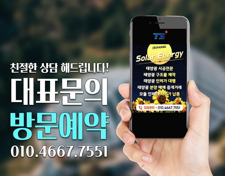 국내외 많은 분들이 하고 있는 사업이지만, 태양광 발전의 장점만 보고 가볍게 뛰어들어서는 안 됩니다. 태양광 발전 사업을 진행하기 전에 태양광 에너지의 장점에 대한 정보를 사전에 습득하고 건설사 선정 과정을 면밀히 검토하십시오.그 후에 진행해야 합니다. 태양광 발전을 활용할 수 있습니다 확실한 시공을 위한 전문 시공사 선정이것은 무엇보다 중요합니다. 또한 태양광 발전의 장점을 살려 공사가 성공하더라도 태양광 발전 사업의 성패는 태양광 발전소를 얼마나 사랑하고 관리하느냐에 달려 있음을 유의하시기 바랍니다.