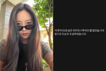 논란이 일자 효민은 해당 게시물을 삭제하고 입장을 밝혔다. 그는 “‘이게 메르콘129다'(저게 뭐지?)와 같은 뜻의 사투리인 줄 알았다. 앞으로 조심하고 조심하겠다”고 사과했다.